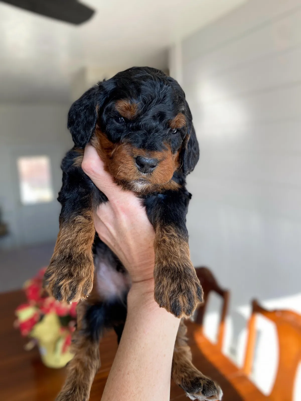 Say hello to these handsome boys! These pups are F1b bernedoodles with gorgeous curly soft coats, expected around 25-35 lbs full grown.